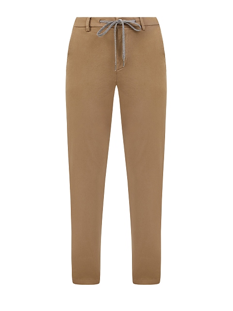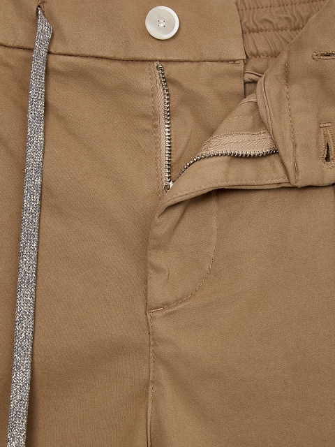 Укороченные брюки в стиле casual от Eleventy созданы из гладкой хлопковой ткани. Однотонное исполнение и лаконичный дизайн делают модель универсальным дополнением повседневных образов, пояс на регулируемой кулиске из трикотажа с нитью ламе придает изделию расслабленный акцент. Сделано в Италии.