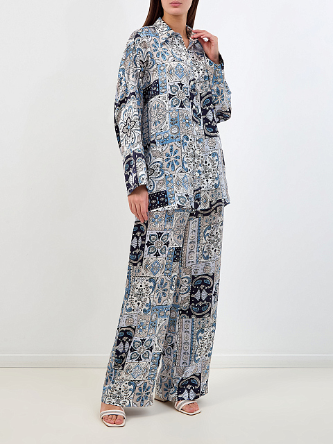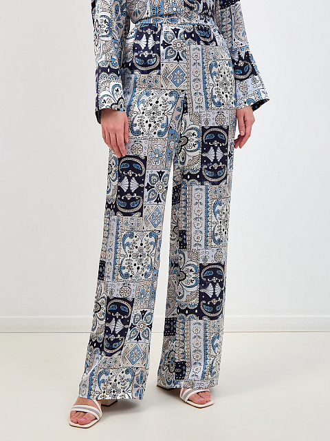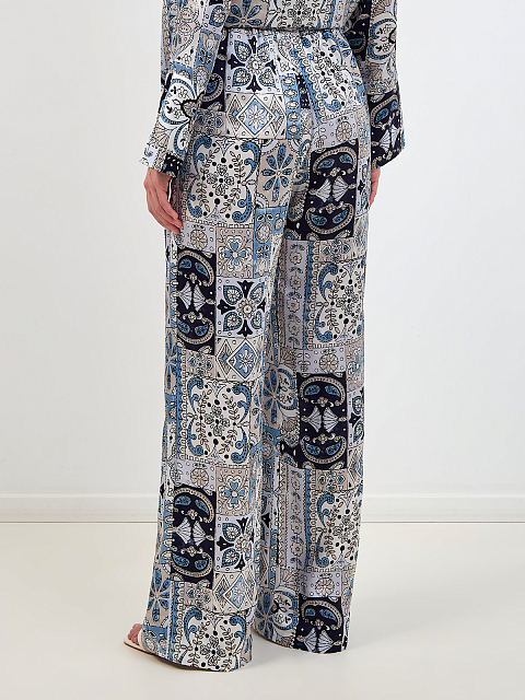 Шелковые брюки-палаццо с орнаментом и эластичным поясом