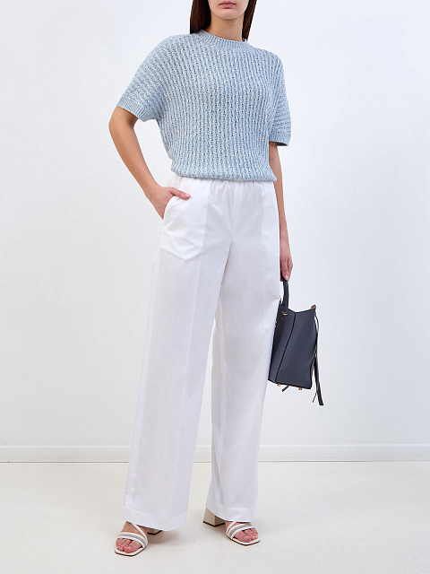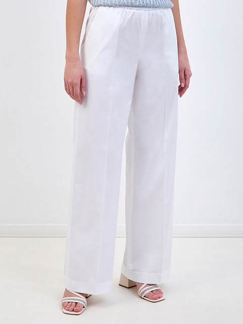 Однотонные брюки свободного кроя из хлопка с эластичным поясом