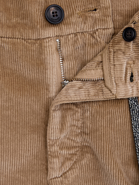 Женские брюки в расслабленном стиле от Eleventy выполнены из мягкого хлопкового вельвета с добавлением волокон модала. Модель слегка зауженного кроя в ореховом оттенке дополнена эластичным поясом на регулируемой кулиске из трикотажа с мерцающей нитью ламе. Детали: четыре кармана, застежка на молнию и пуговицы. Сделано в Италии.