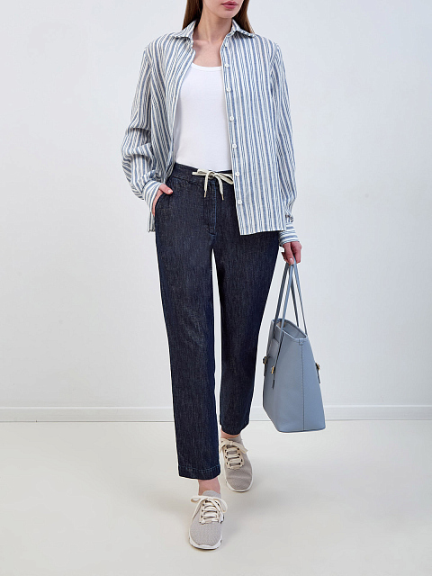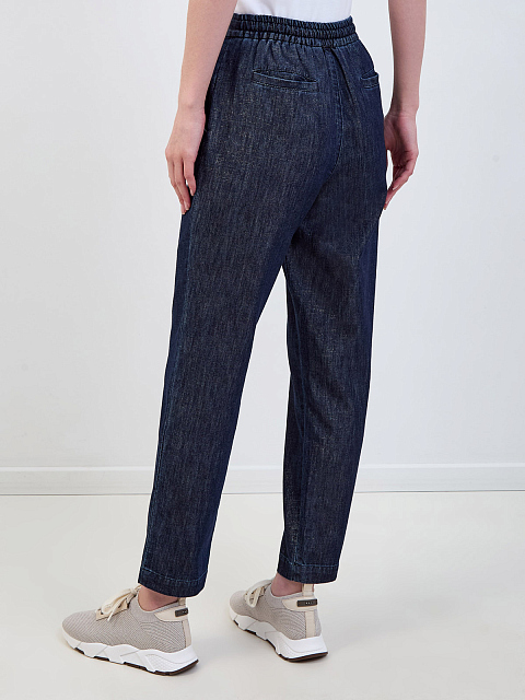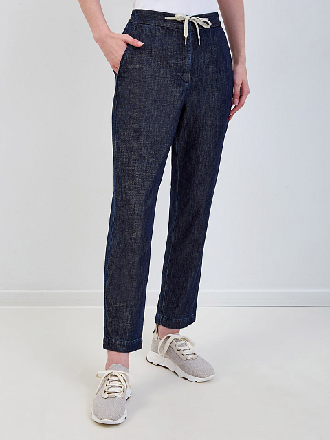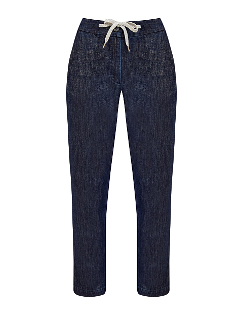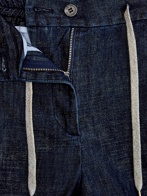 Брюки из тонкого денима с нитью ламе и поясом на кулиске