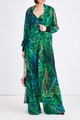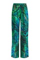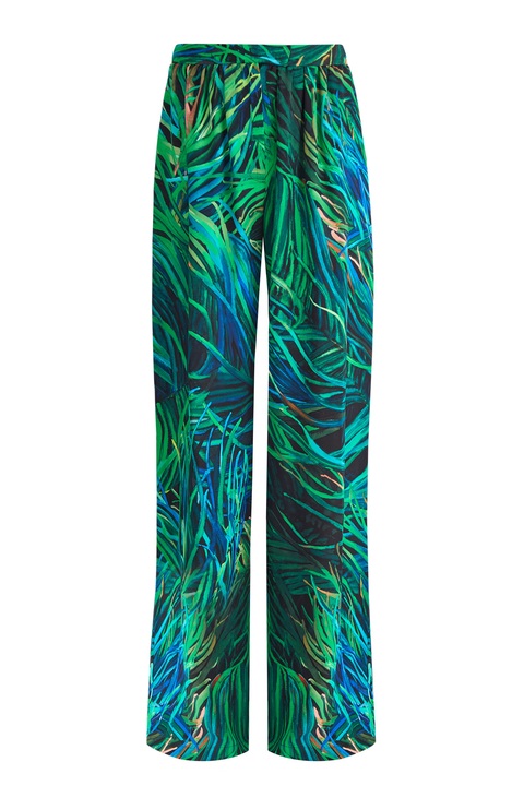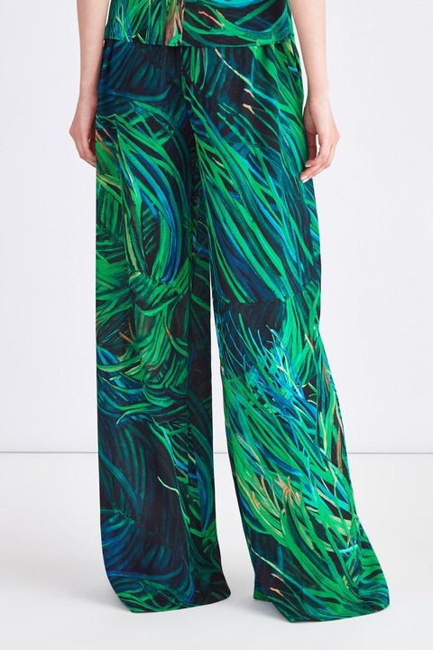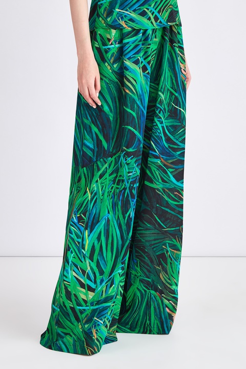 Брюки-палаццо из шелка с изумрудным принтом в тропическом стиле