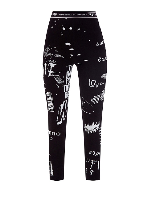 Комфортные леггинсы от Ermanno Scervino выполнены из экологически чистой вискозной пряжи в черном цвете. Эластичный материал идеально подходит для активного отдыха или занятий спортом. Модель дополнена контрастным принтом в стиле граффити и поясом с монограммой бренда. Детали: изделие без застежки, облегающий крой. Сделано в Италии.