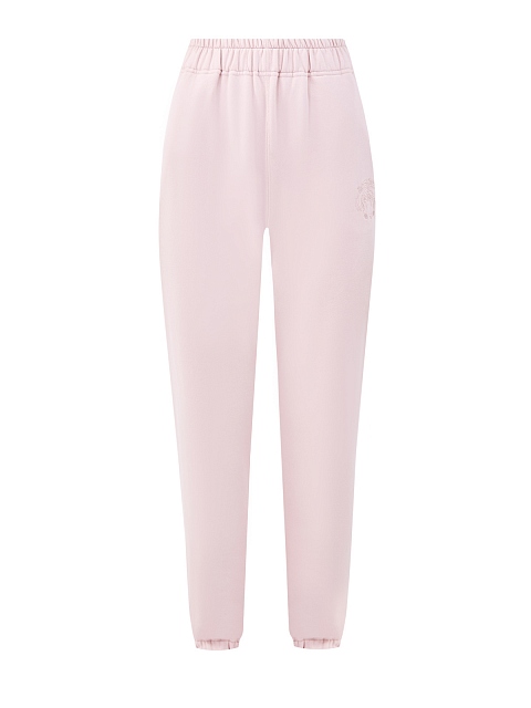 Женские брюки-джоггеры в спортивном стиле от Ermanno Scervino выполнены в пудровом оттенке из мягкого хлопка. Гладкий материал с фактурной внутренней отделкой обеспечивает максимальный комфорт и идеально подходит для создания расслабленных образов. Фирменный штрих — вышитый логотип бренда. Детали: широкий пояс, эластичная отделка кромок, прорезные карманы. Сделано в Италии.