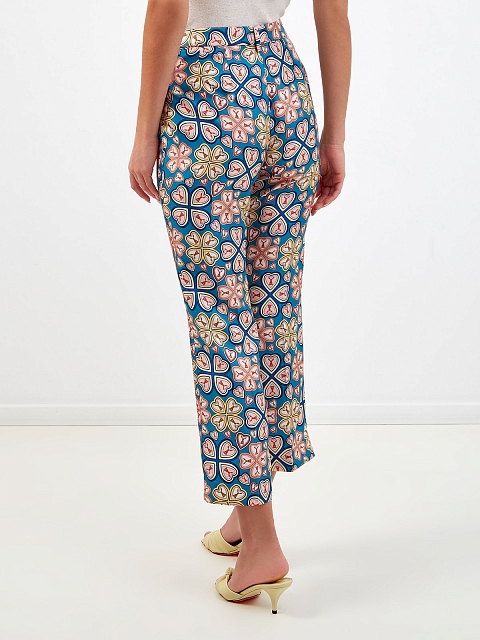 Шелковые брюки ручной работы с принтом Lucky Clovers