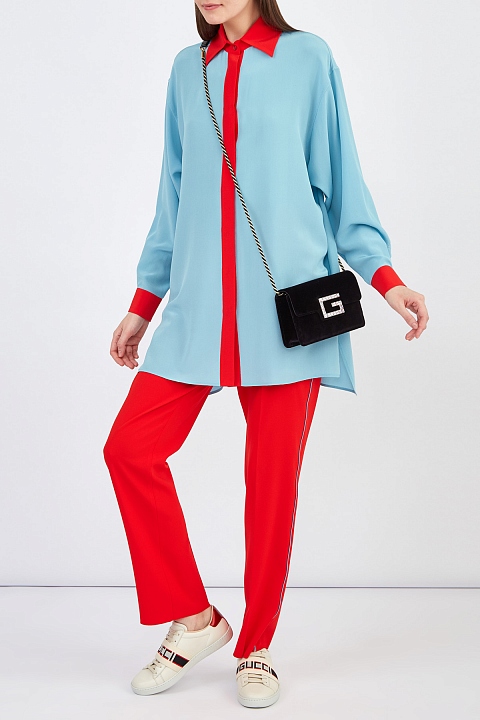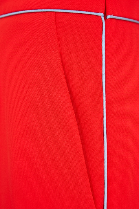 Брюки слегка зауженного книзу кроя от Etro созданы из дышащей струящейся синтетической ткани. Благодаря своему составу материал не сминается и надолго сохраняет ярко-алый оттенок. Модель дополнена отделкой швов тесьмой голубого оттенка, которая придает изделию необычный объемный эффект. Диагональные прорезные карманы и потайная застежка на молнию завершают дизайн. Сделано в Италии.