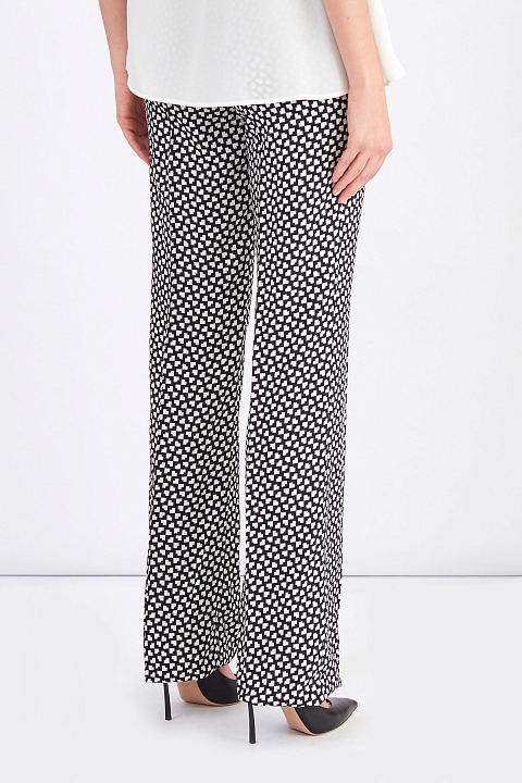 Брюки-палаццо в монохромной черно-белой гамме с высокой посадкой