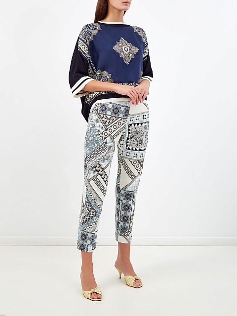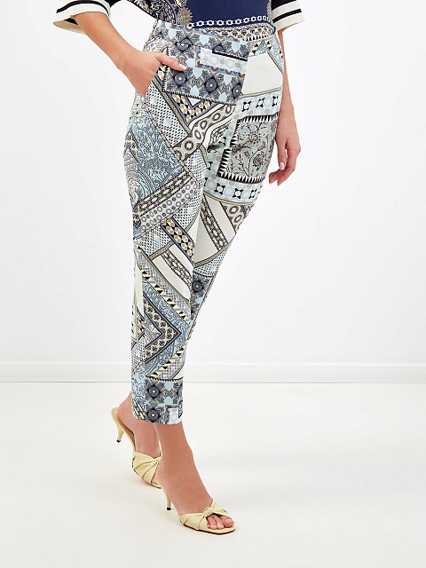 Брюки из тонкого хлопка с принтом в технике patchwork