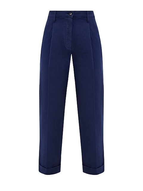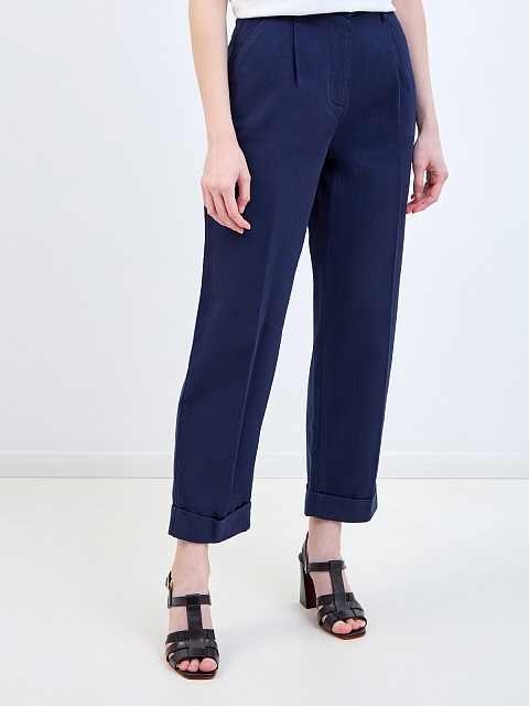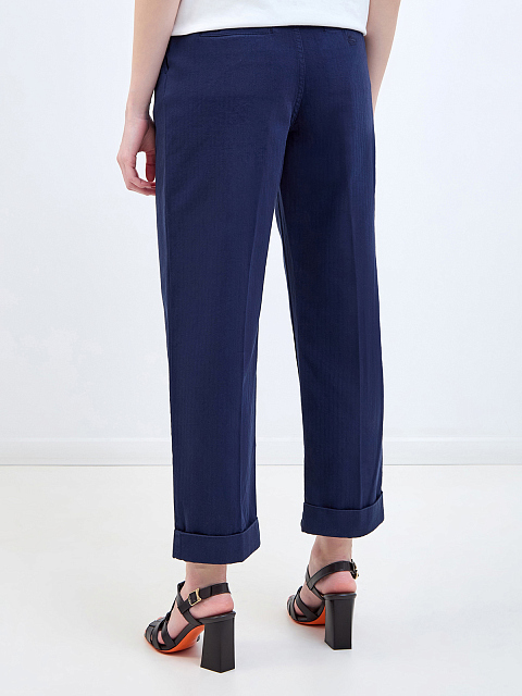 Хлопковые брюки укороченного кроя с шевронным узором и защипами