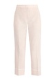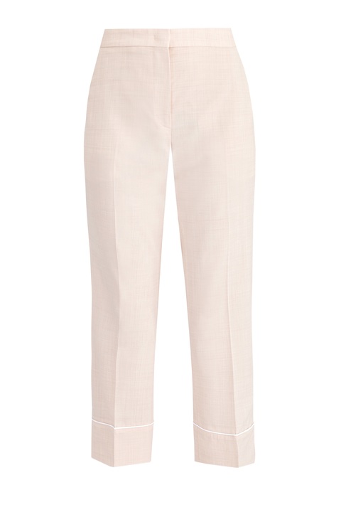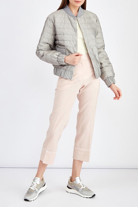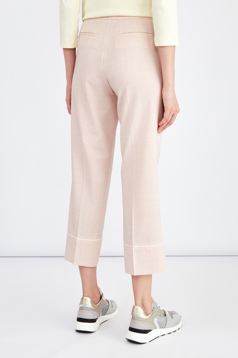 Укороченные брюки от Fabiana Filippi выполнены из благородной шерстяной ткани с натуральной текстурой и меланжевым эффектом по поверхности. Образ в стиле спортшик создает отделка контрастной тесьмой на декоративных отворотах. Детали: диагональные карманы по бокам, прорезные карманы с бортами на спинке, потайная застежка. Сделано в Италии.
