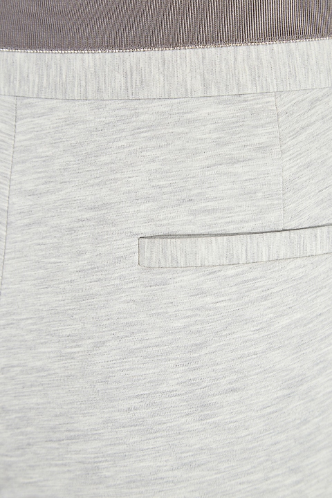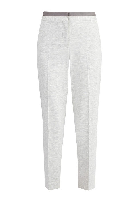 Эффектные брюки от Fabiana Filippi выполнены из хлопка Montefalco — гладкая фактура джерси придает классической модели оригинальный акцент. Изделие в меланжево-сером оттенке дополнено отделкой пояса репсовой лентой с вышивкой фирменной цепью бусин ювелирной огранки. Детали: вытачки для посадки по фигуре, прорезные карманы с бортами на спинке и диагональные карманы по бокам. Сделано в Италии.