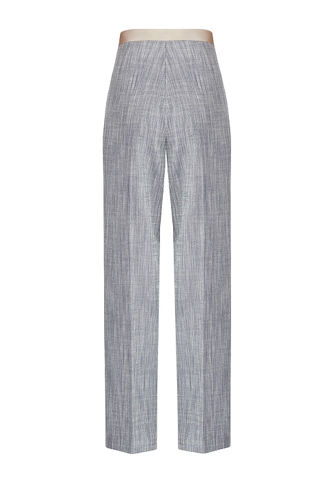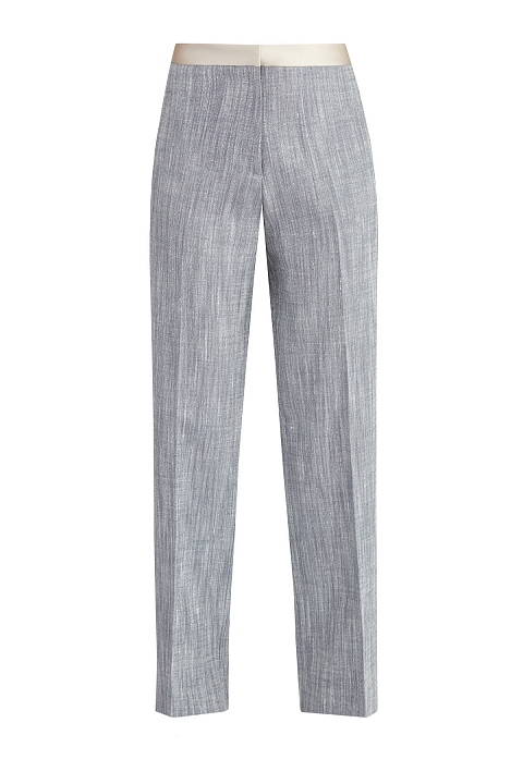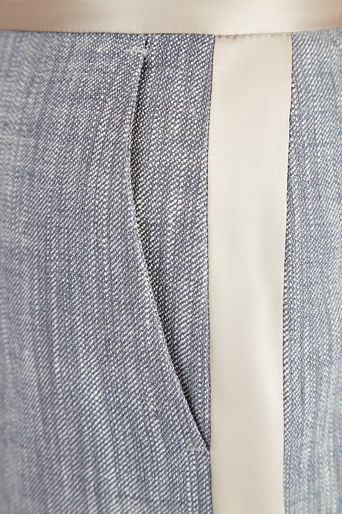 Брюки из шелка и льна с меланжевым эффектом и атласными лампасами