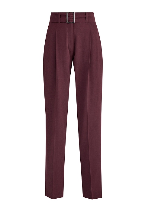 Брюки из струящейся шерстяной ткани с пряжкой на поясе