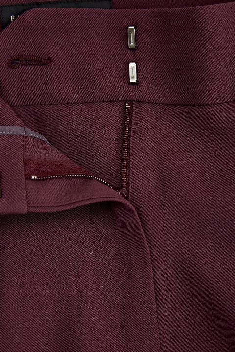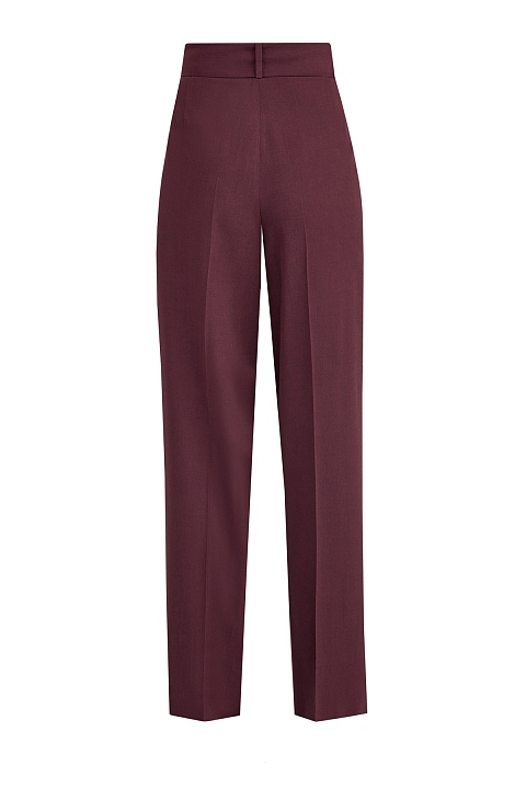 Эффектные брюки на высокой посадке от Fabiana Filippi выполнены из ткани на основе шерстяных волокон в богатом оттенке ягодного вина. Крой с заложенными складками подчеркивает струящуюся фактуру материала, широкий пояс-лента с массивной пряжкой создает акцент на линии талии. Детали: потайная застежка, прорезные карманы. Сделано в Италии.