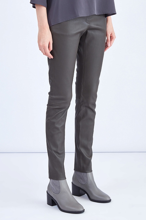 Стиль: Slim, Укороченные, Кожа, Однотонные