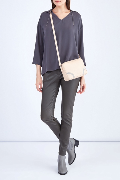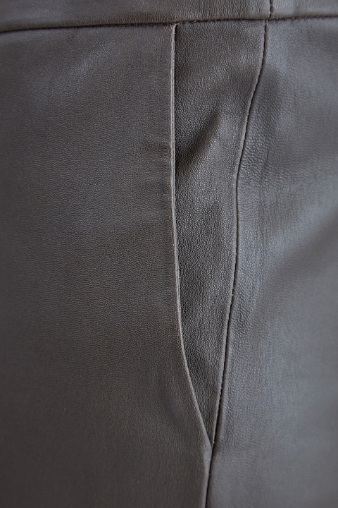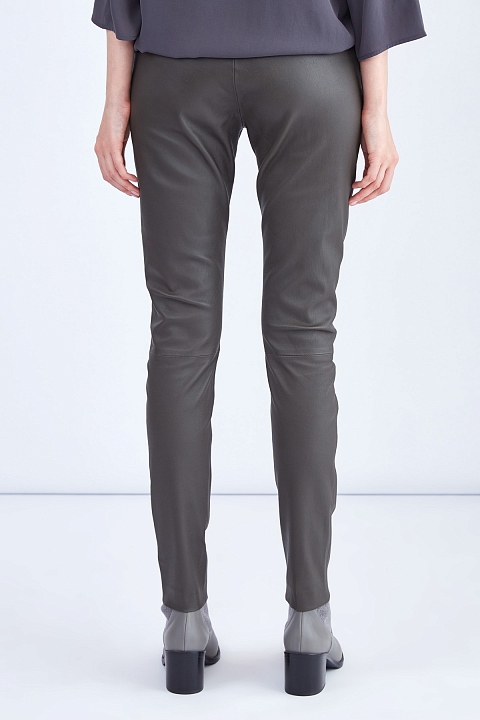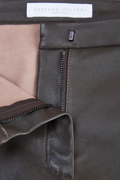 Лаконичные женские брюки кроя скинни из коллекции осень-зима от Fabiana Filippi созданы из натуральной мелкозернистой кожи в классическом оливковом оттенке. Внутренняя поверхность дополнена вискозной тканевой отделкой для комфорта. Сложный крой с вытачками обеспечивает посадку по фигуре, а декоративные швы создают динамичный образ. Изделие оснащено диагональными прорезными карманами. Притачной пояс с застежкой на металлический крючок и молнию завершает минималистичный дизайн. Сделано в Италии.