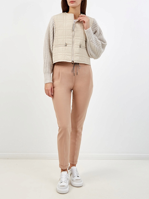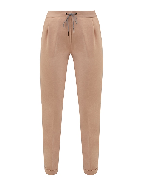 Стильные женские брюки от Fabiana Filippi выполнены из тонкой ткани на основе шерсти, эластичные волокна в составе облегчают уход за изделием. Свободный укороченный крой с заложенными складками идеально подходит для создания повседневных образов в стиле leisure. Пояс на регулируемой кулиске обеспечивает комфортную посадку, окантовка из блестящей цепочки придает сверкание прорезным карманам и добавляет модели изысканный штрих. Сделано в Италии.