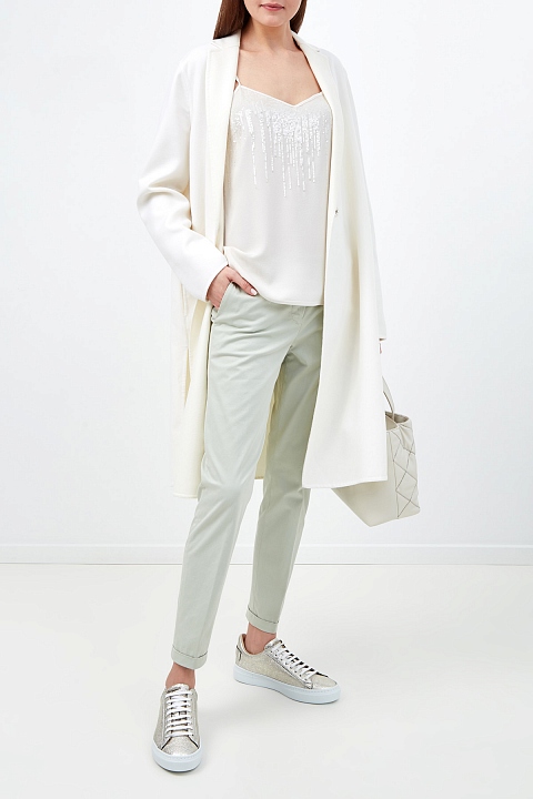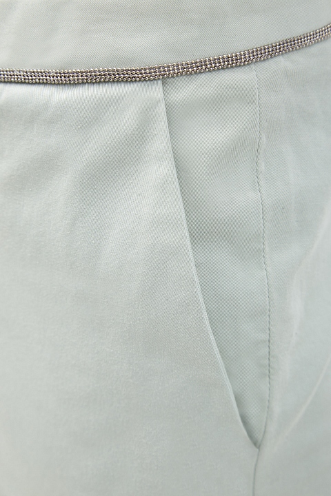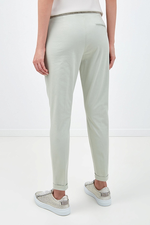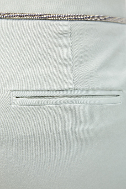Брюки-чинос от Fabiana Filippi созданы из плотного хлопкового габардина в мягком фисташковом оттенке. Модель на комфортной средней посадке с расшитым вручную поясом. Полностью натуральный состав и минималистичное исполнение делают модель незаменимым элементом базового гардероба. Детали: прорезные карманы, потайная застежка, отвороты. Сделано в Италии.