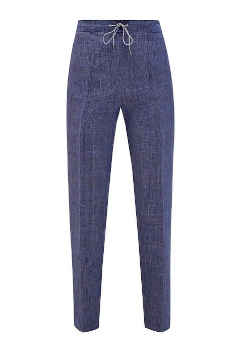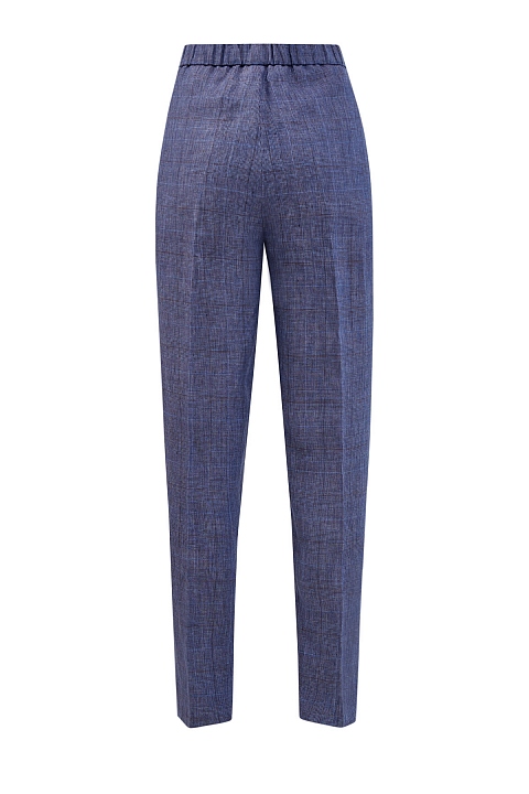 Прямые брюки от Fabiana Filippi выполнены из натурального льна с характерной неоднородной текстурой. Модель представлена в кобальтово-синем оттенке с принтом в клетку, который подчеркивает строгие линии кроя. Комфортная посадка на талии достигается за счет эластичной вставки на спинке, а кулиска придает образу нотку неформального шика. Детали: два кармана по бокам, без застежки. Сделано в Италии.