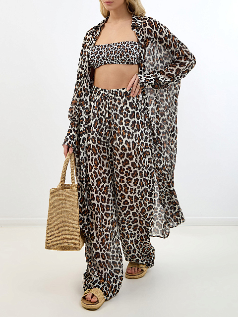 Свободные брюки с анималистичным принтом и эластичным поясом