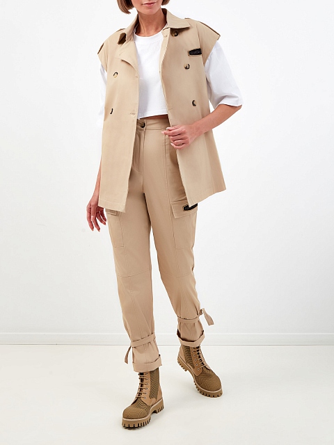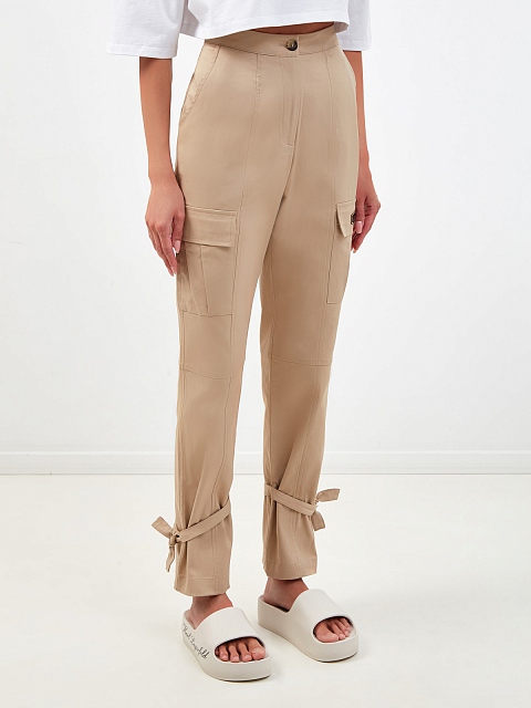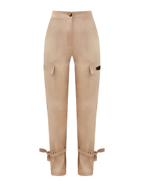 Брюки-карго из хлопкового габардина с карманами и вышивкой