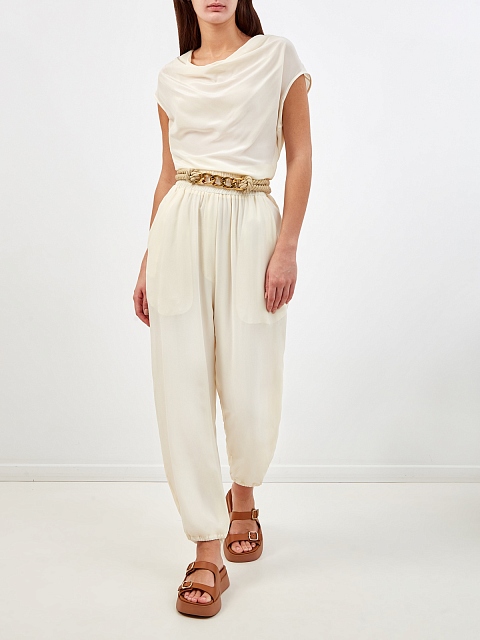 Брюки из струящегося шелкового крепа с широким поясом