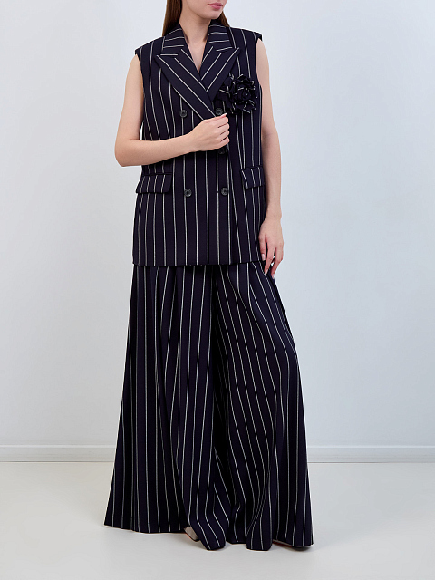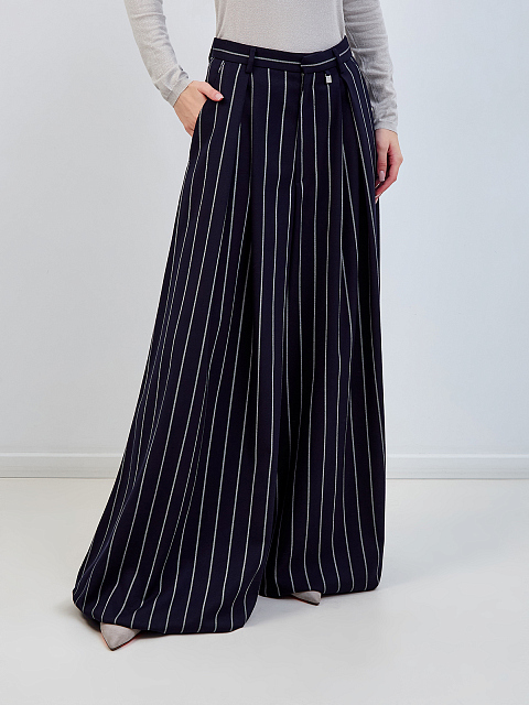 Широкие брюки-палаццо в полоску с фактурными защипами
