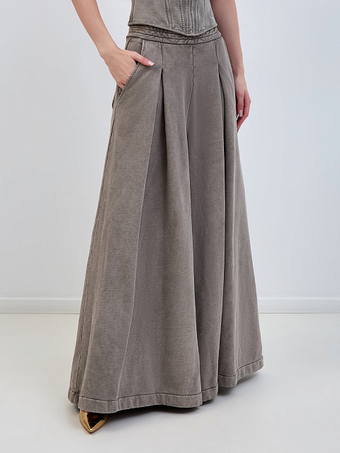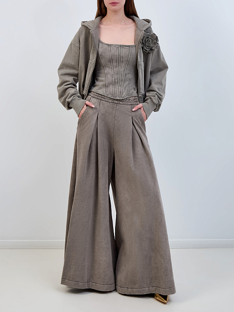 Широкие брюки из окрашенного вручную хлопка с фактурными защипами