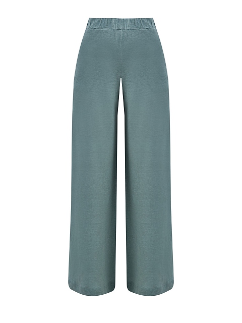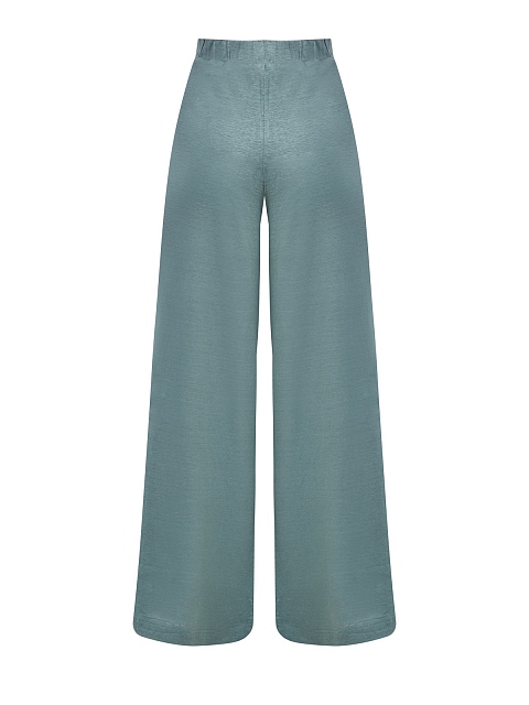 Льняные брюки-палаццо с эластичным поясом и карманами