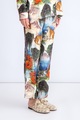 Брюки из атласного шелка с принтом и тонкими лампасами