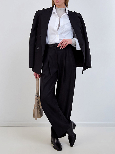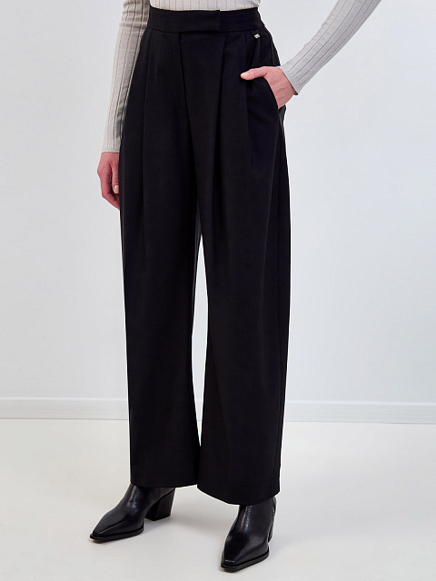 Брюки из костюмной шерстяной ткани с защипами