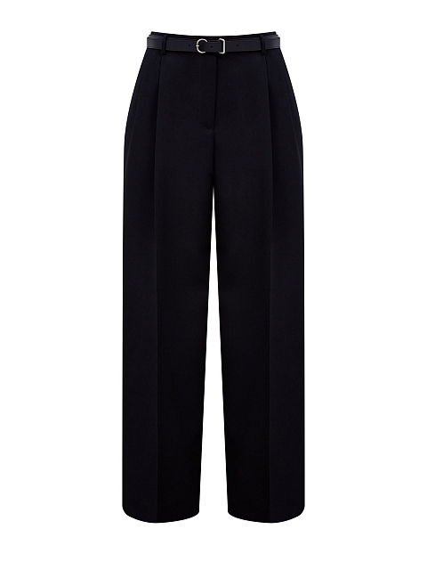 Брюки из шерстяного габардина с защипами и ремнем