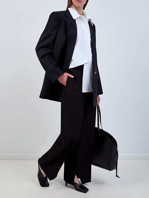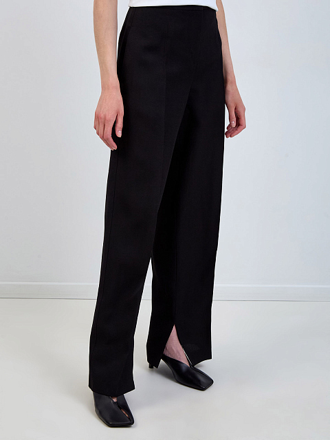 Брюки из вискозы и шелка с разрезами и заложенными складками
