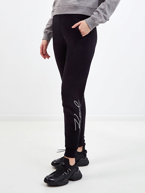 Хлопковые джоггеры с логотипом K/Signature из мерцающих стразов