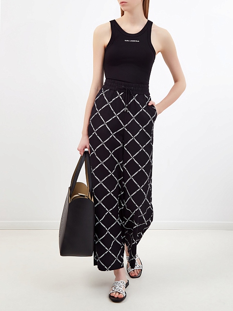 Стиль: Палаццо, Укороченные, Высокая посадка, С принтом