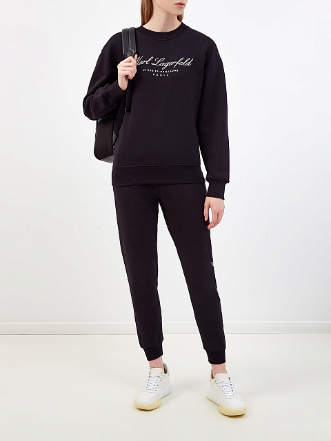 Хлопковые брюки-джоггеры с контрастной вышивкой