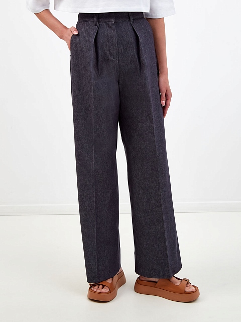 Широкие брюки из хлопка с заложенными складками
