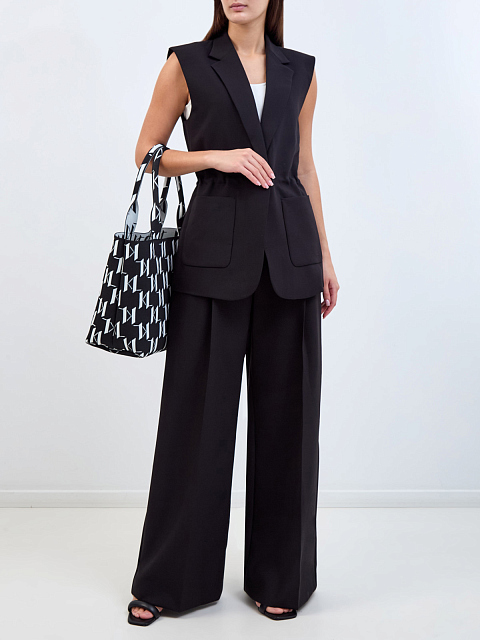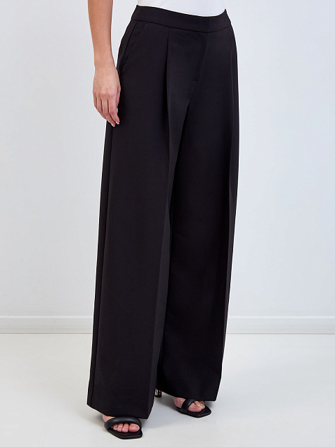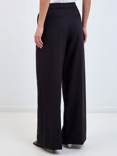 Костюмные брюки-палаццо с фактурными защипами и вышивкой