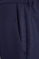 Базовые брюки в стиле sportcasual от Kenzo выполнены из мягкой шерстяной фланели в сапфирово-синем оттенке. Модель дополнена элементами в классическом стиле: прорезными диагональными карманами, а также простроченными стрелками. Динамику образу придает широкий эластичный пояс на кулиске, а также нижние кромки с отворотами.