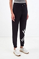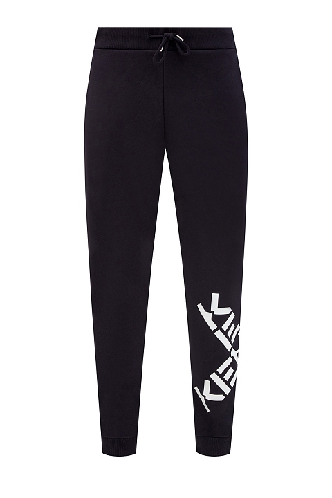 Спортивные женские брюки-джоггеры в универсальном черном цвете от Kenzo выполнены из мягкого хлопка. Гладкий материал с фактурной внутренней отделкой обеспечивает максимальный комфорт и идеально подходит для создания расслабленных образов. Динамичный штрих изделию придает контрастный принт с монограммой бренда. Детали: пояс на регулируемой кулиске, эластичная отделка кромок в рубчик.