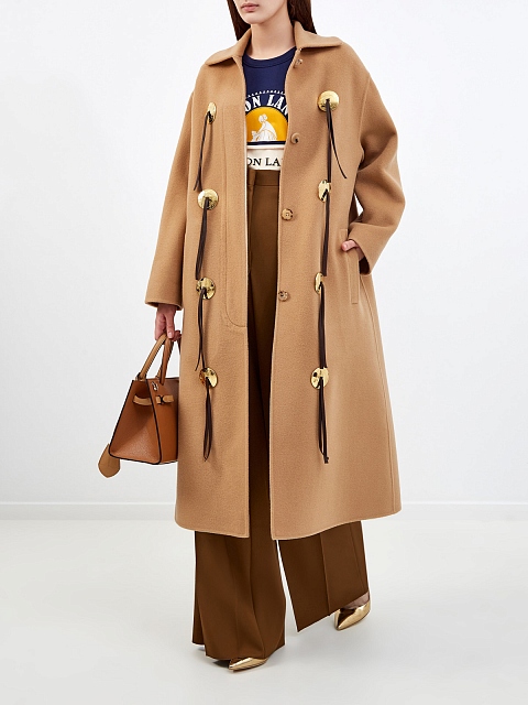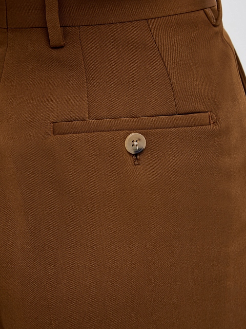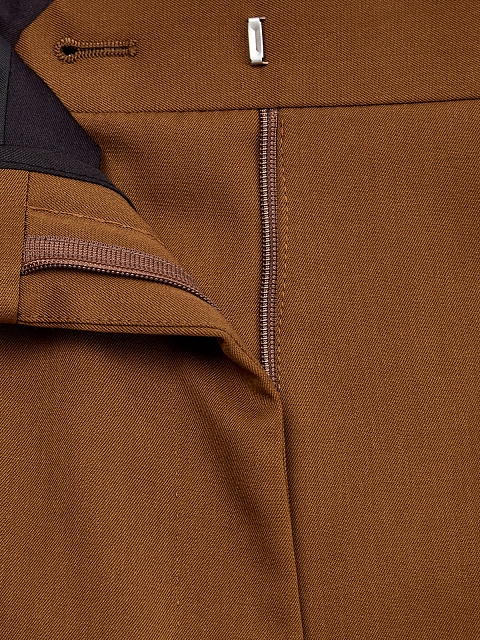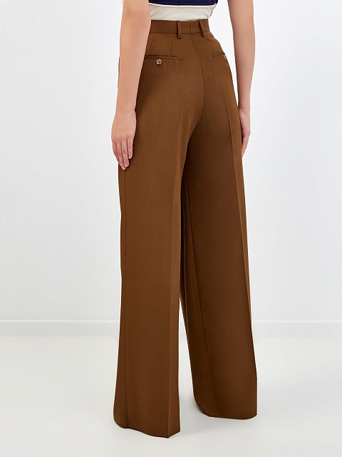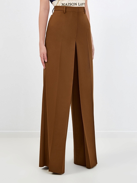 Брюки от Lanvin созданы из шерстяного габардина — плотной, струящейся ткани с диагональным переплетением волокон. Прямой силуэт дополнен заложенными внутрь складками, которые придают образу объемный элегантный штрих. Завышенная линия талии и крой с вытачками обеспечивают посадку по фигуре. Детали: выполненные вручную отделочные швы, застежка на пуговицу, крючок и молнию. Сделано в Италии.