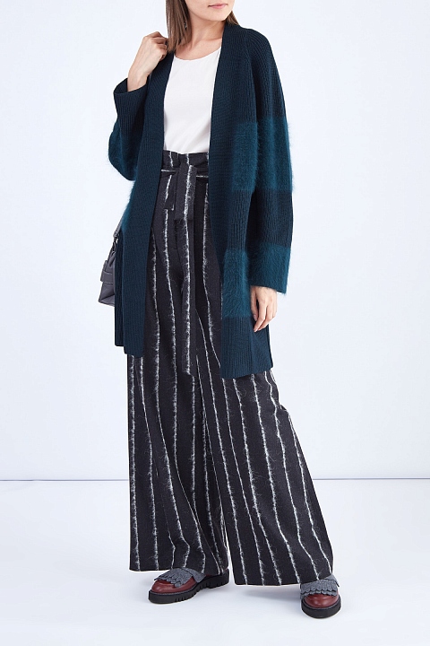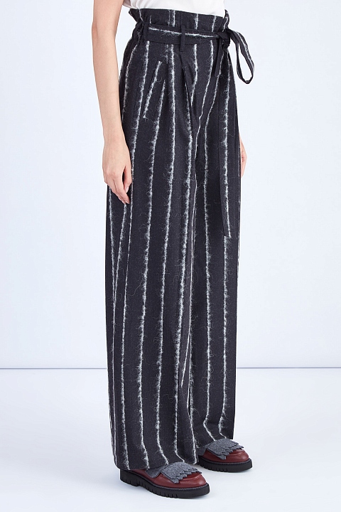 Брюки-палаццо с полосатым узором в интерпретации ворсистыми нитями