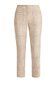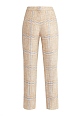 Укороченные брюки прямого кроя от Lorena Antoniazzi выполнены из благородного льна с характерной волокнистой фактурой и принтом в клетку. Модель на широком притачном поясе оснащена диагональными прорезными карманами. Детали: застежка на пуговицу, крючок и молнию, подвеска в фирменном стиле. Сделано в Италии.
