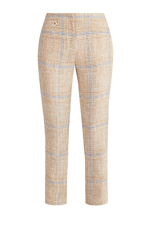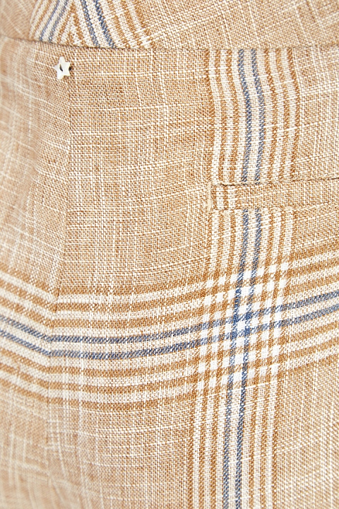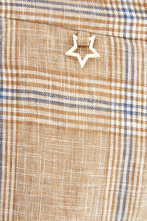 Укороченные льняные брюки с принтом в клетку и фирменной подвеской