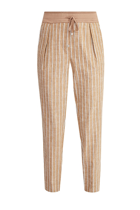 Брюки из льна в стиле спортшик с трикотажным поясом