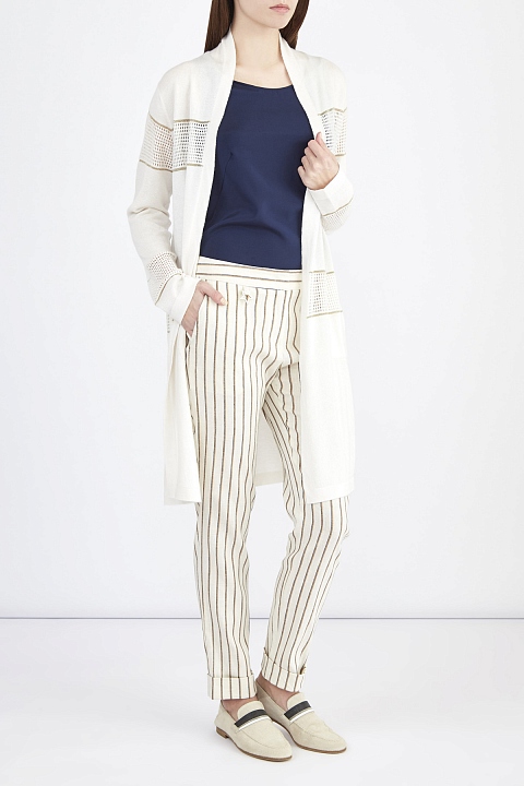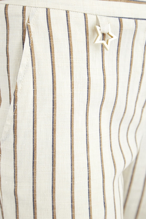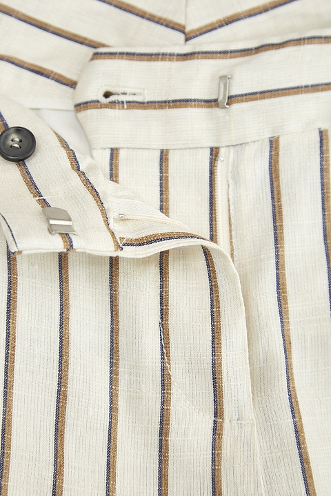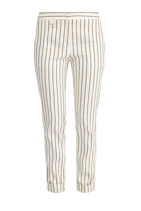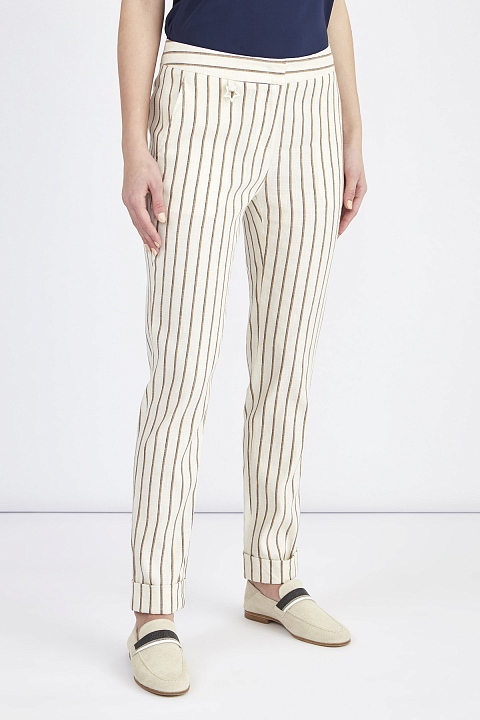 Узкие льняные брюки с принтом в полоску и отворотами