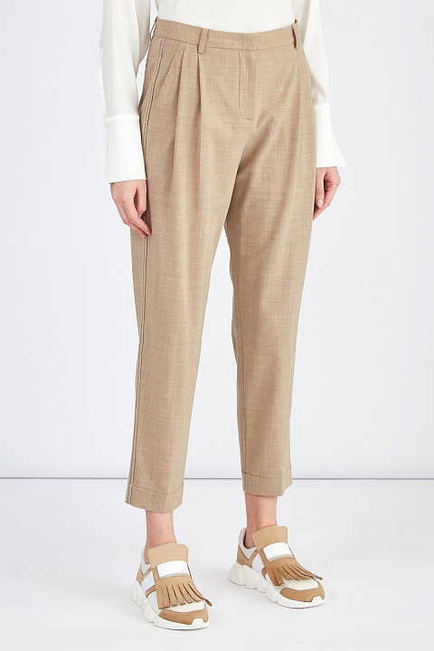Стиль: Зауженные, С лампасами, Укороченные, Высокая посадка, Шерсть, Однотонные