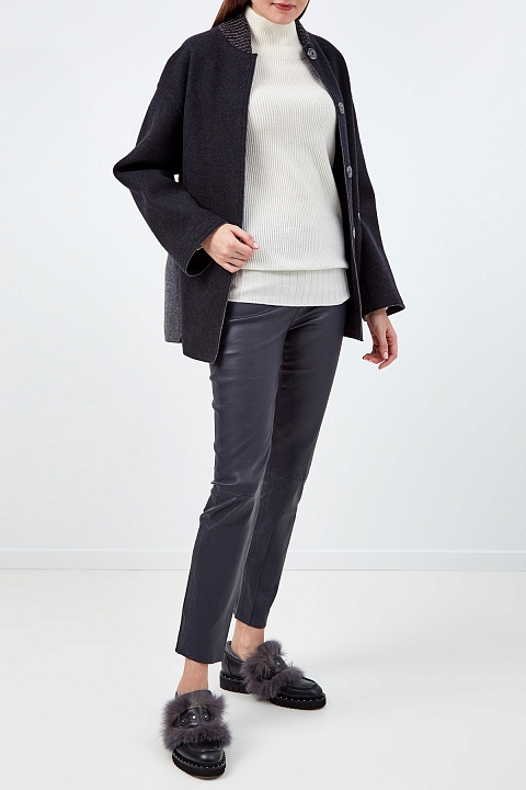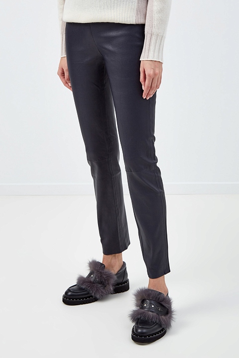Брюки из кожи ягненка на высокой талии