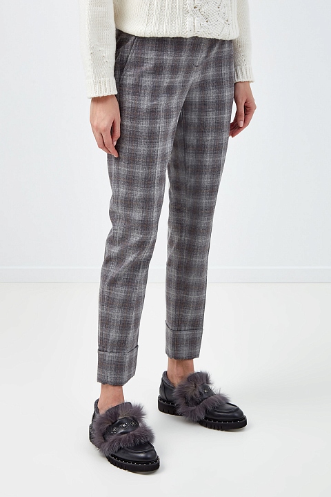 Брюки Slim Fit из шерстяной ткани в клетку