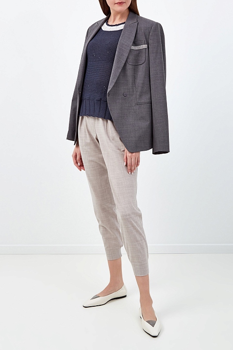 Шерстяные брюки с трикотажной отделкой